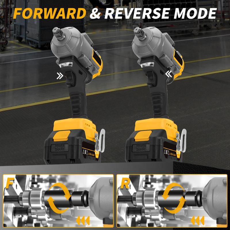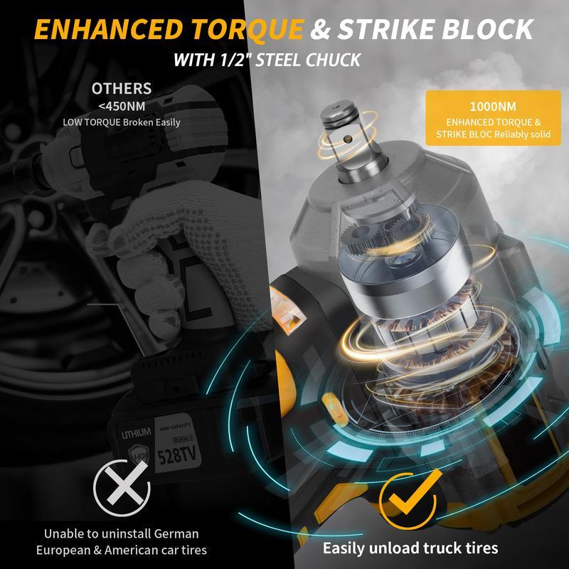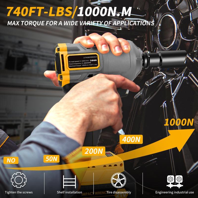 1200N.m Cordless Impact Wrench, 855Ft-lbs 1/2 inch Electric Impact Gun, High Torque Brushless Impact Wrench w/ 2x 4.0Ah Battery, Fast Charger & 6 Sockets